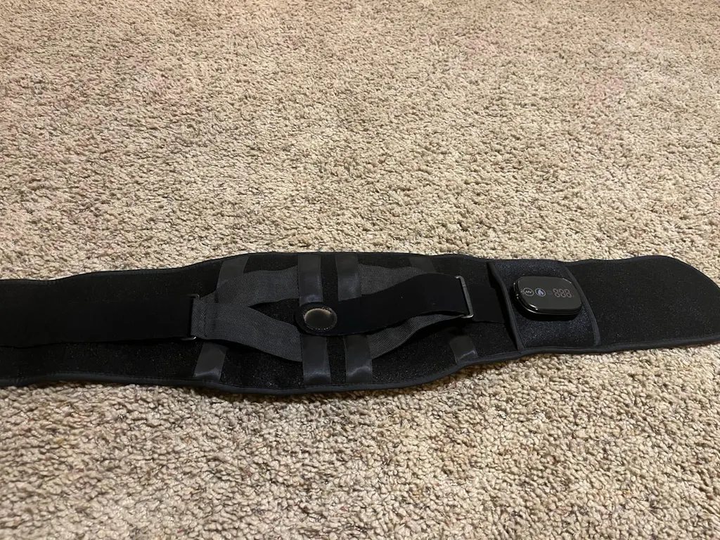 This wearable therapy belt combines infrared light therapy, adjustable heat, and vibration massage to provide a relaxing wellness experience.